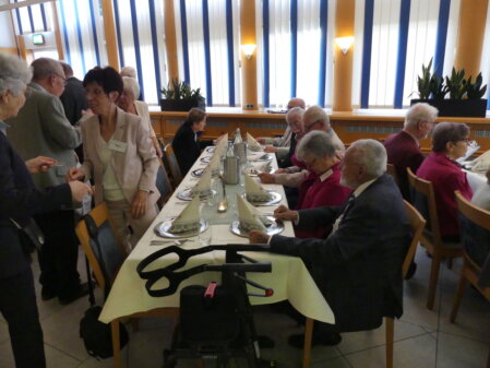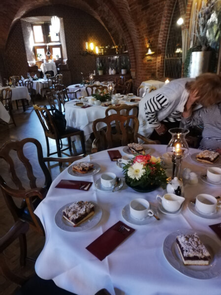 Nach dem interessanten Besichtigungsprogramm in fanden sich die Damen zur Kaffeepause im Ratskeller zusammen (das eigentlich geplante Café Brödje war leider kurzfristig ausgefallen). Bei hervorragendem Kirsch-Streusel-Kuchen wurden die lebhaften Gespräche fortgesetzt. Die „Notlösung Ratskeller“ erwies sich damit eher als Topfavorit.