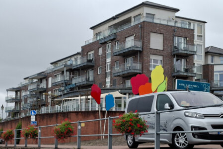 Schiff auch Touren in die benachbarten Niederlande macht: Ein Schild im