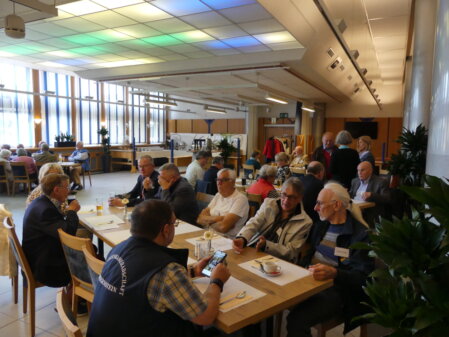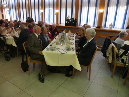 Im Kasino angekommen, waren durch unser seit Jahren fest eingespieltes Organisationsteam schnell die Namensschilder ausgegeben und restliche Formalitäten erledigt, sodass unser Sprecher, GenLt a.D. Ploeger, zur Begrüßung der 69 ehemaligen Offiziere und Freunde der Führungsdienste, davon 26 Damen, übergehen konnte. Ein namentliches Willkommen galt den anwesenden „Senioren“, Oberstlt a.D. Kaupmannsennecke, Oberstlt a.D. v. Groddeck und Oberstlt a.D. Zahler (Scholz). Von unserem Ehrensprecher, GenMaj a.D. Poschwatta, konnte er Grüße aus der Ferne bestellen.