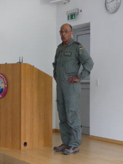 Verbunden mit dem Dank für die Unterstützung dieses Treffens, stellte er O i.G. Worch vor, der in kurzfristiger Vertretung der Air Component Command (ACC)-Führung (GenLt Th. Poschwatta bzw. GenMaj Hogrebe, StvKdr, ChdSt, StOÄ) sowohl die Gastgeberrolle als auch den späteren Vortrag übernahm. Vorgestellt und begrüßt wurde auch Oberst Mbassa, Kdore des TaktLwG 33, der im Nachmittagsprogramm neben seinem eigenen Vortrag auch in Vertretung von O i.G. Heitzmann auftrat.