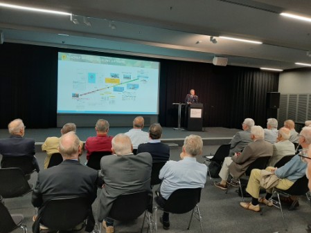 Die Informationsveranstaltung für die Herren eröffnete GenLt Leidenberger, (für die Aufgabe als Geschäftsführer/CSO der BWI vom aktiven Dienst freigestellt), mit dem Vortrag "Digitalisierung auf dem Gefechtsfeld und die Sicht der BWI".